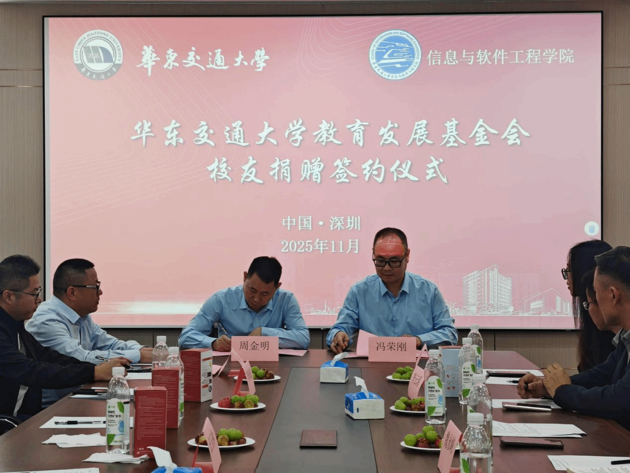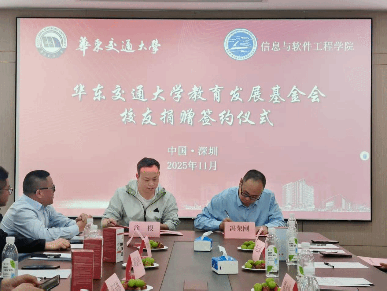 2001级计算机科学与技术校友、江西北辰轨道交通设备有限公司总经理余姝丹签署捐赠协议