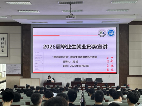 于南区图书馆202报告厅成功举办2026届研究生就业形势宣讲会。研究生辅导员刘妮老师及全体2026届研究生参加会议。
