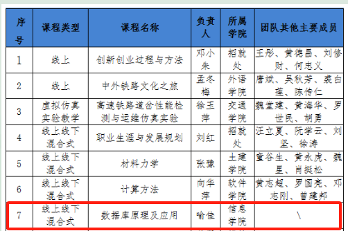 日前,教育部公布了第二批国家级一流本科课程认定结果,我院喻佳主持的《数据库原理及应用》1课程获批为国家级一流本科课程(线上线下混合式一流课程)。