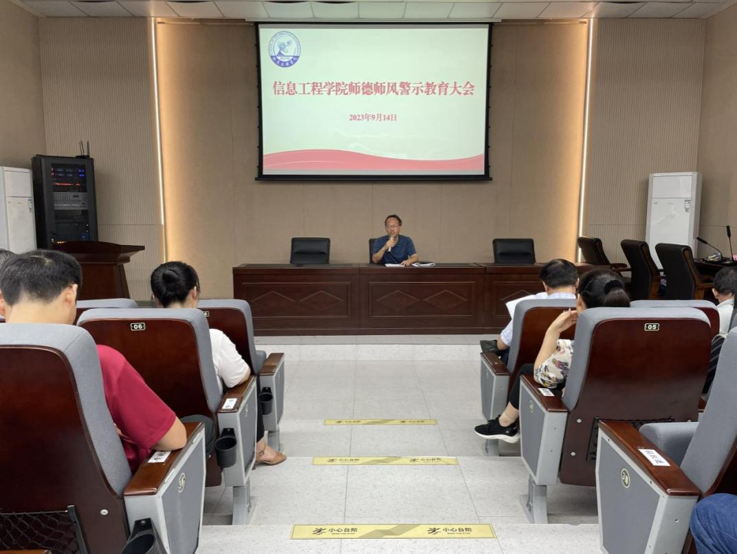 为进一步加强全院教职工的师德师风建设,2023年9月14日,信息工程学院于教5栋108校友学术报告厅举行了师德师风建设月活动启动仪式并开展师德师风警示教育。院党委书记何仲坚、副院长罗晖、官雪辉等领导班子成员出席,全体教职工参加会议。