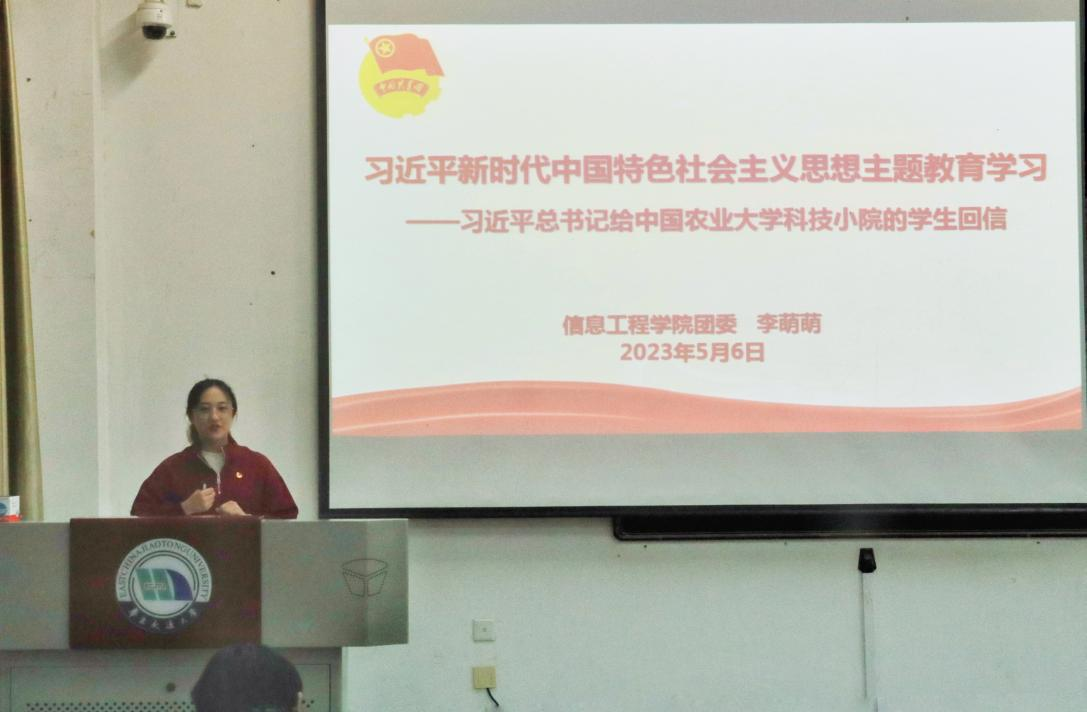 为深入学习贯彻习近平新时代中国特色社会主义思想主题教育,5月6日,信息学院全体学生干部召开习近平总书记给中国农业大学科技小院的同学们回信精神学习会。