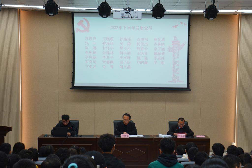 3月24日,信息工程学院在教5栋108校友报告厅召开学生党员大会暨新发展党员宣誓仪式,院党委书记何仲坚院党委组织员王业贵及全体学生党员参加会议。