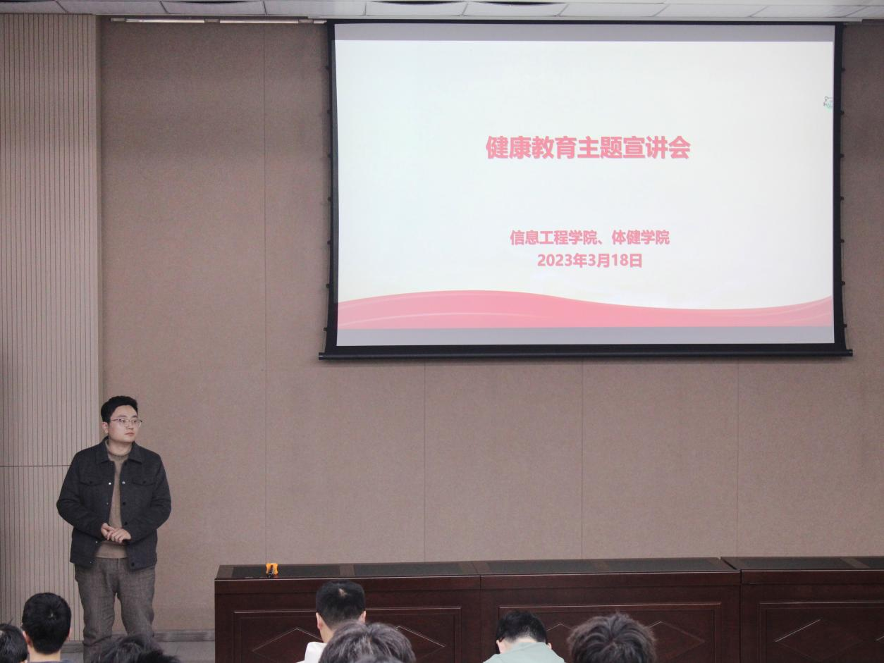 为培养大学生健康意识,促进身心健康发展。3月18日,信息工程学院、体育健康学院于教五栋108共同举办了健康教育主题宣讲会,信息学院洪亚聪老师主持会议,体育健康学院简鹏老师主讲。