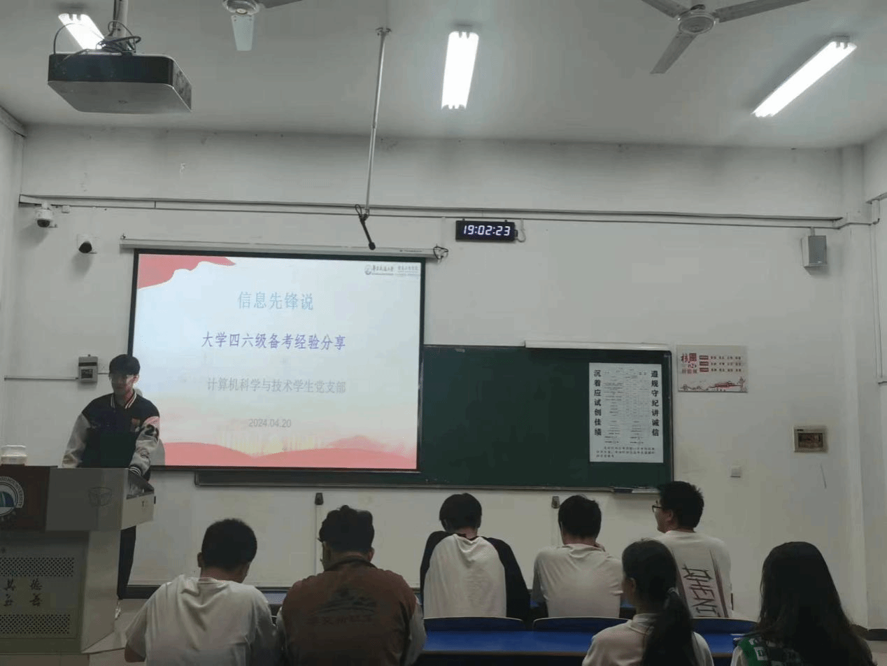 4月20日,信息工程学院举办“信息先锋说”第三十一期交流分享会,此次会议由计算机科学与技术学生党支部主持。本次分享会以大学英语四六级备考经验分享为主题,由鄯智新同志进行经验分享。计算机科学与技术2022-3班全体同学参会。