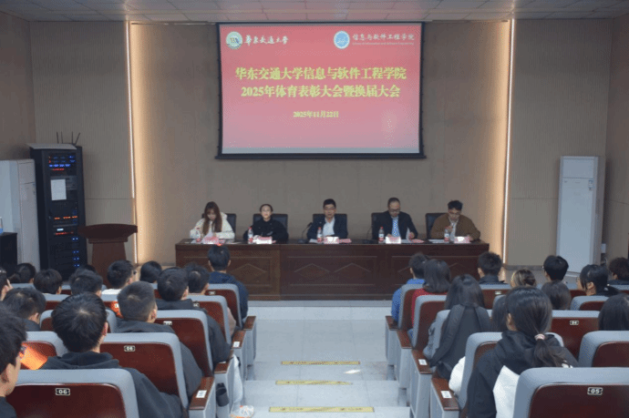 为总结学院体育工作成果、表彰先进个人,明确未来学院体育事业发展方向,11月22日上午,信工学院2025年体育工作表彰大会暨换届大会在校友报告厅举行。院党委书记魏永峰、党委副书记冯荣刚,院团委书记李萌萌、体育中心指导老师胡林娜出席大会,院团委副书记肖志鹏主持会议。